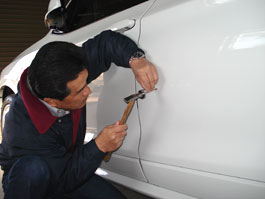| デントリペアの素晴らしさに感動しディーラーのメカニックより転職。 デントリペアもまだまだ知名度が低く、ほんの小さな凹み(1センチ程度)位しか直らないと思われているのが現状です。 開業当初は、鈑金工場、カーコンビニ、ディーラー様等営業に伺っても、相手にされませんでした。 しかしその場所で実際に凹みを修復することにより、デントリペアの素晴らしさを知っていただくことができ、今では多くの受注をいただいております。 凹みの状態(場所、大きさ、衝撃の強さ)によっては、10センチ、20センチの凹みでも、修復が可能です。 板金塗装をする前に是非ご連絡をください。お客様の所にお伺いして、凹みの状態を見させていただきます。 |